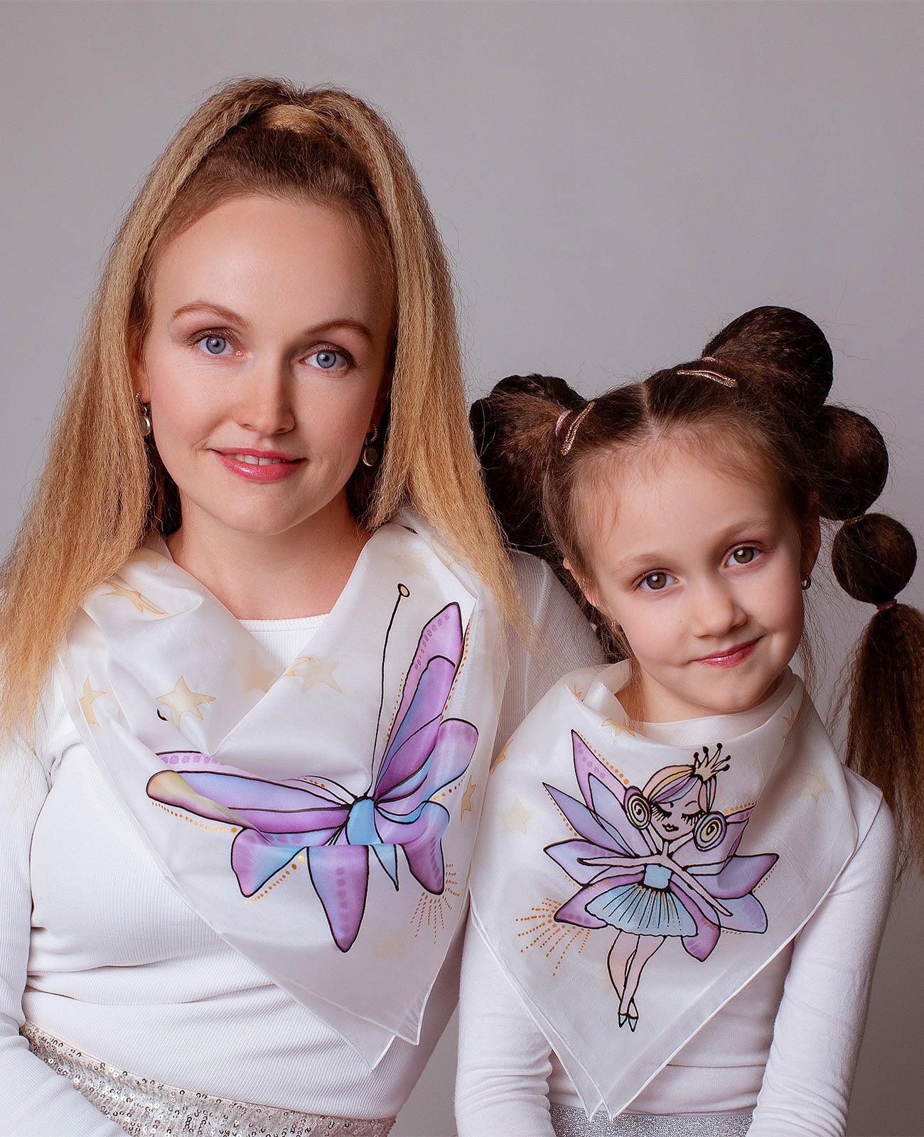 Purple Fairy and Purple Butterfly Hand Painted Silk Scarve Set - Mother & Daughter