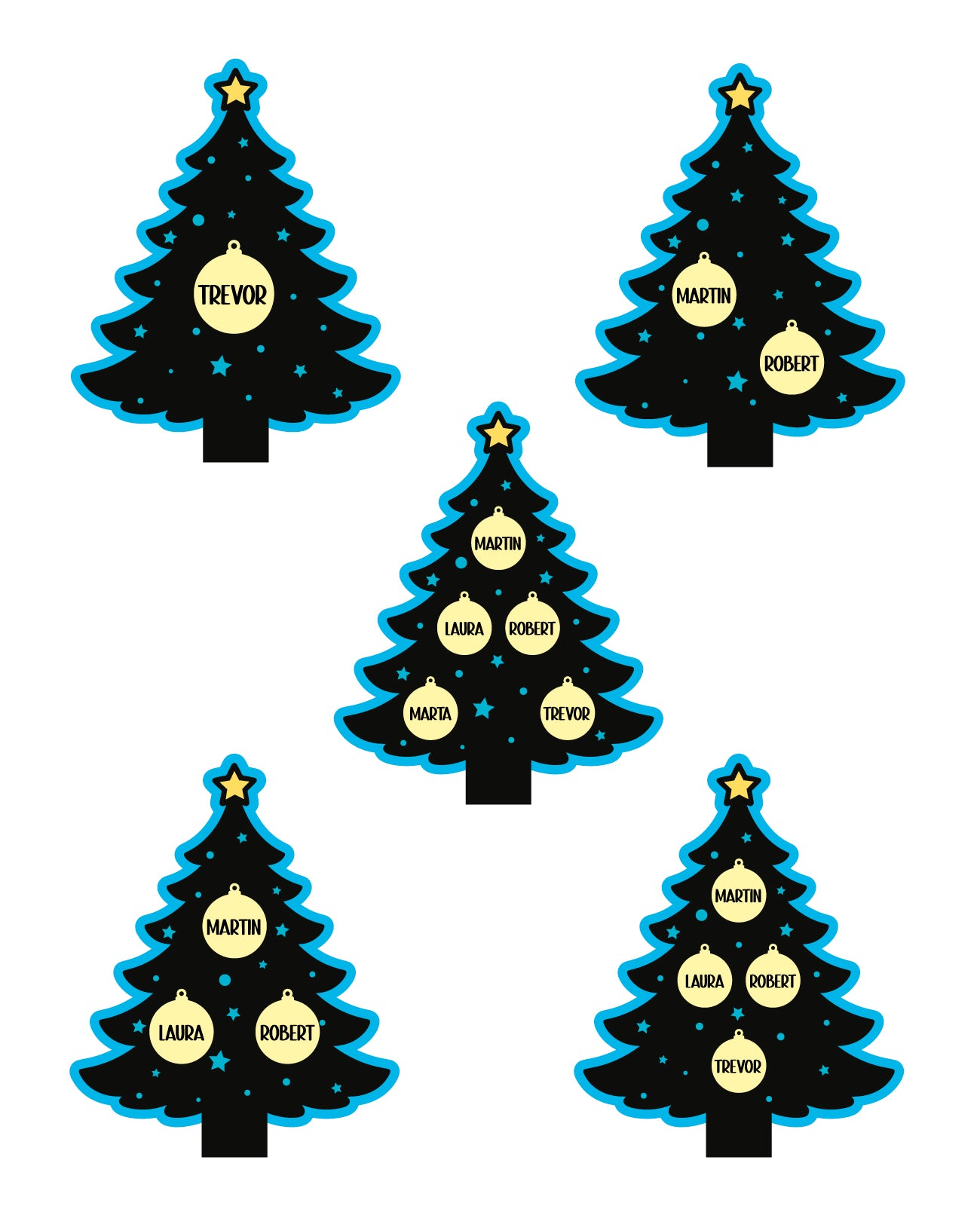 Pictured: Tree color - light blue and light beige, tree ornaments with names - rose gold.