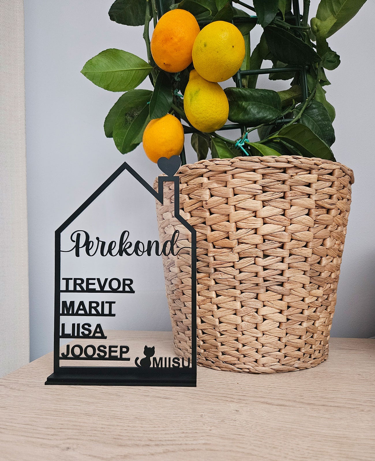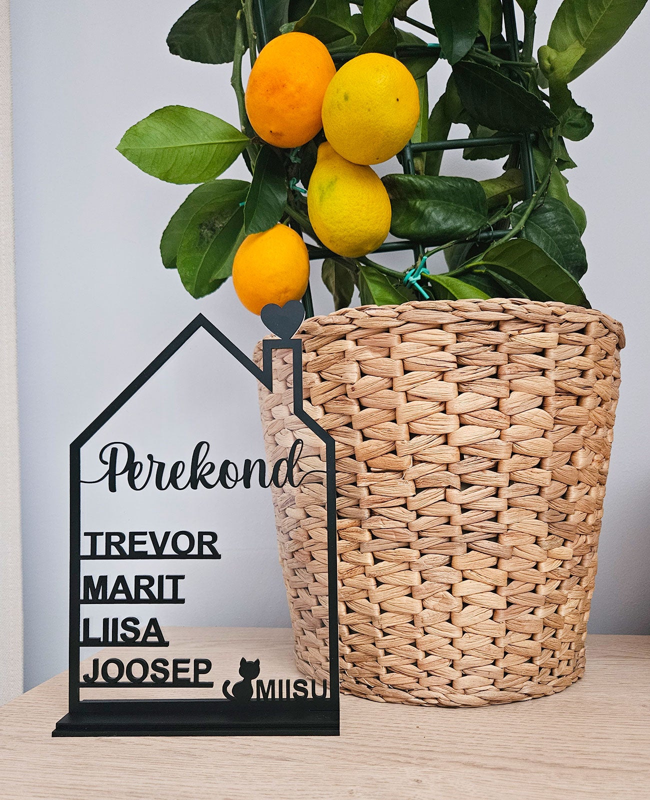 See isikupärastatud majakujuline alus on kujundatud kõigi pereliikmete eesnimedega.